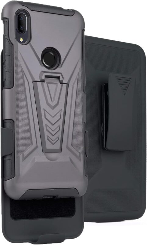 Capa com clipe para celular Jitterbug Smart3, capa híbrida robusta [cinza] Nakedcellphone [com suporte] e [giratório] coldre de quadril para cinto Jitterbug Smart 3 (2021) para idosos (também
