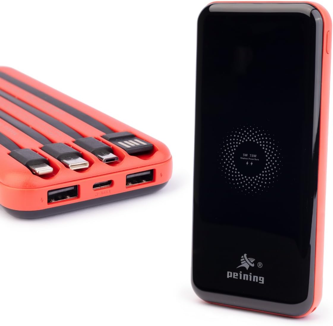 Carregador Portátil Indução 10.000mAh 7.5w 5v 2a + 4 Saídas Cabo Compatível com Android e iOS (Vermelho)