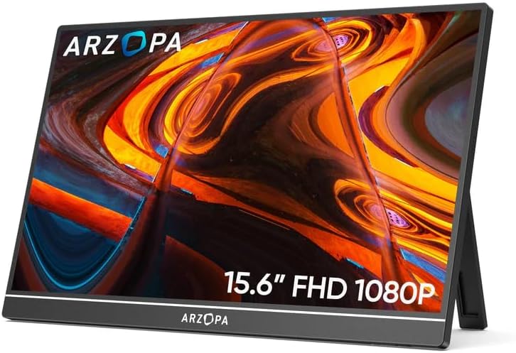 Monitor Portátil ARZOPA A1 15,6” FHD 1080P IPS com Suporte, USB-C e HDMI para Laptop, PC, Mac, Celular, Xbox e PS5
